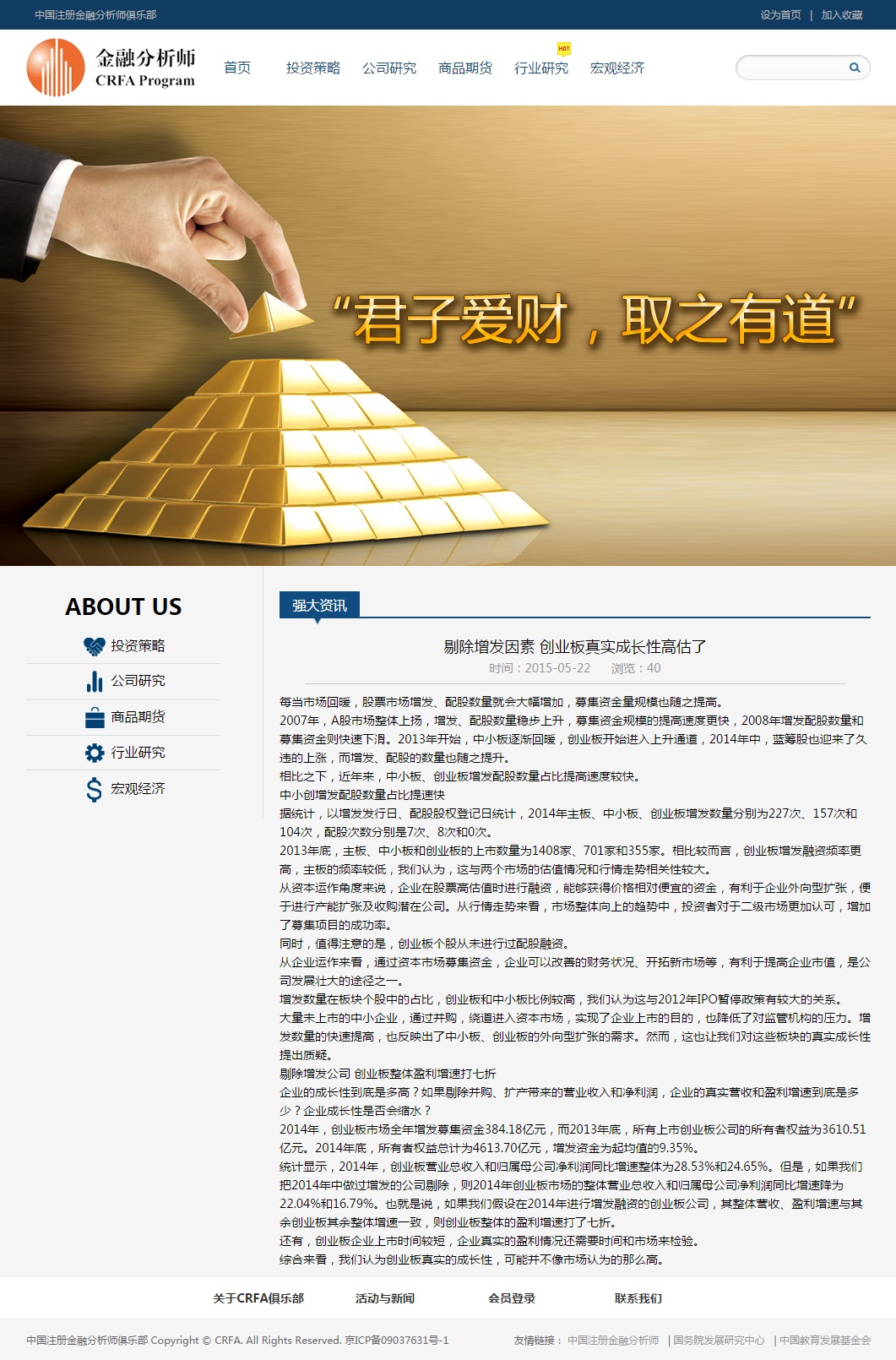 通过“中国注册金融分析师培养计划”的学员可以加入中国注册金融分析师俱乐部,通过微信公众号、沙龙、讲座、会员交流等及时分享主办机构、同学提供的各种金融资讯,确保会员在国内金融领域的竞争中始终保持信息领先状态。